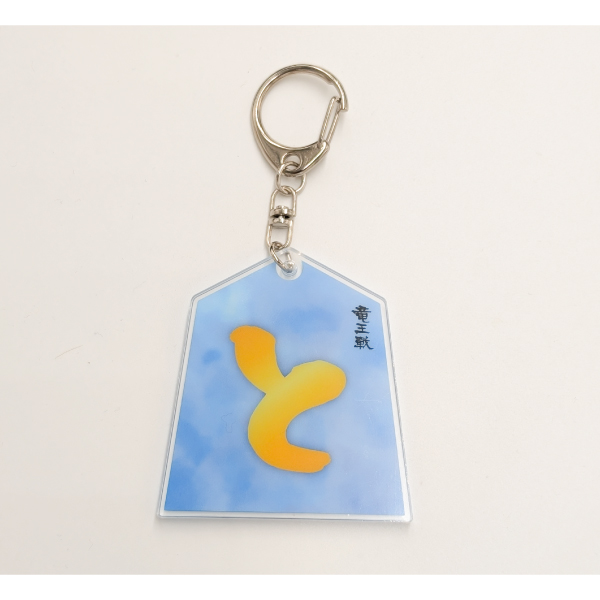竜王戦ロゴ入り、将棋の駒形アクリルキーホルダーです。一字駒を模した紫陽花を連想させるカラーとなっております。文字は、「歩」と成り「と」。読売新聞社賞の受賞歴のある書道家の蒼喬氏にデザインしていただきました。